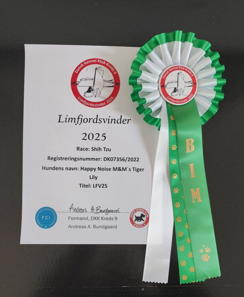 12/10-2025 DKK Kreds 9, Nordisk “Limfjordsvinder 2025”, Struer 15. oktober 2025 Blog Tiger – Limfjordsvinder 2025 Happy Noise M&M’s Tiger Lily Bedste tæve, BIM CAC NCAC “Limfjordsvinder 2025” 💫 Happy Noise M&M’s Bella Mimi Debut i veteranklassen 2/2, VCAC Dommer: Nadja Lafontanie, DK (ændring fra Jouko Leiviskä, Finland).